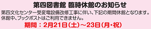 (終了)【全館】図書館システム 一時休止のお知らせ