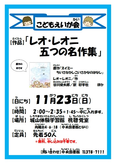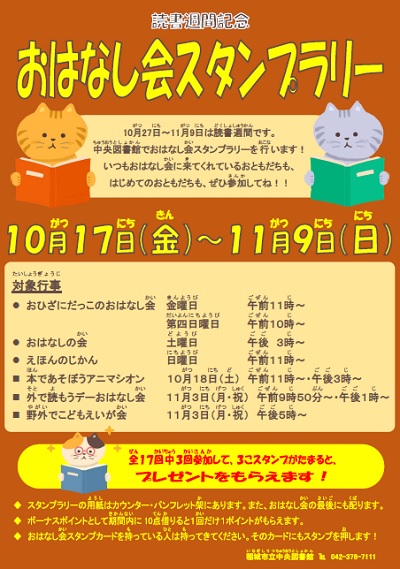 おはなしの会(いなぎおはなしの会) (おはなしの城) (おはなし花梨) | ★10:15~ ★11:15~ ◎13:00~ | 中央図書館 おはなし室 |