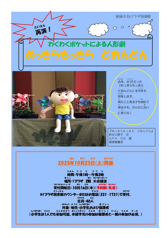 子どもたちに本の世界を楽しんでもらうイベントを開催します。