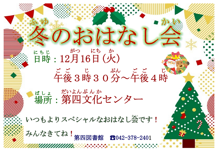 第一・第二・第三・第四図書館:12月28日(日)~1月5日(月)お休み
