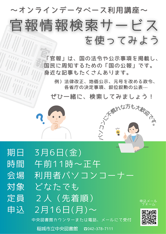 問合せ:稲城市立中央図書館(電話:042-378-7111)