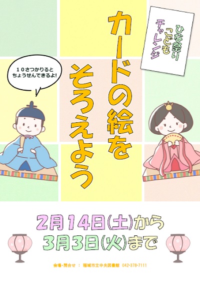 | | 2026/02/14 | 【中央】ひな祭りこどもチャレンジ | | by 図書館管理者 |