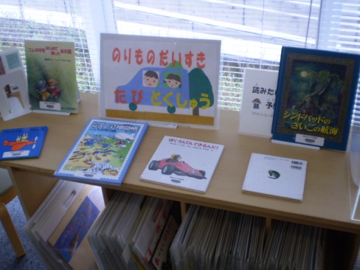 7月の児童コーナーでは「たび・乗り物だいすき」をテーマに