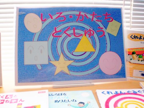 【色・形の本】をテーマにかざりつけを行ないます。