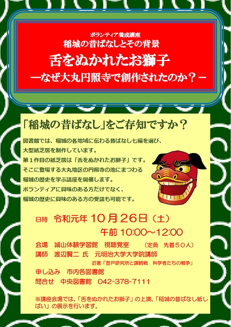 図書館では、稲城の各地域に伝わる昔ばなし七編を選び、
