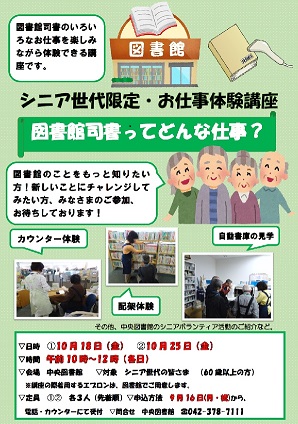 シニア世代限定・お仕事体験講座 「図書館司書ってどんな仕事?」