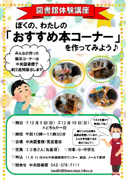 申込 11月15日から中央図書館カウンター、電話、メールで受付