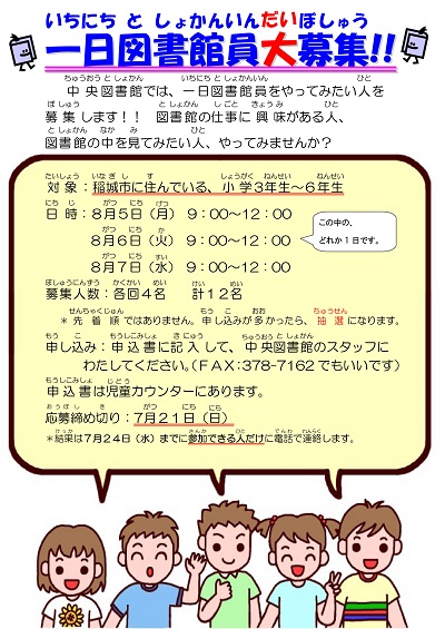【中央】一日図書館員大募集!