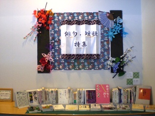 季語の本や作品作りを学べる本。また、何人かの俳人や歌人の本も展示しています。