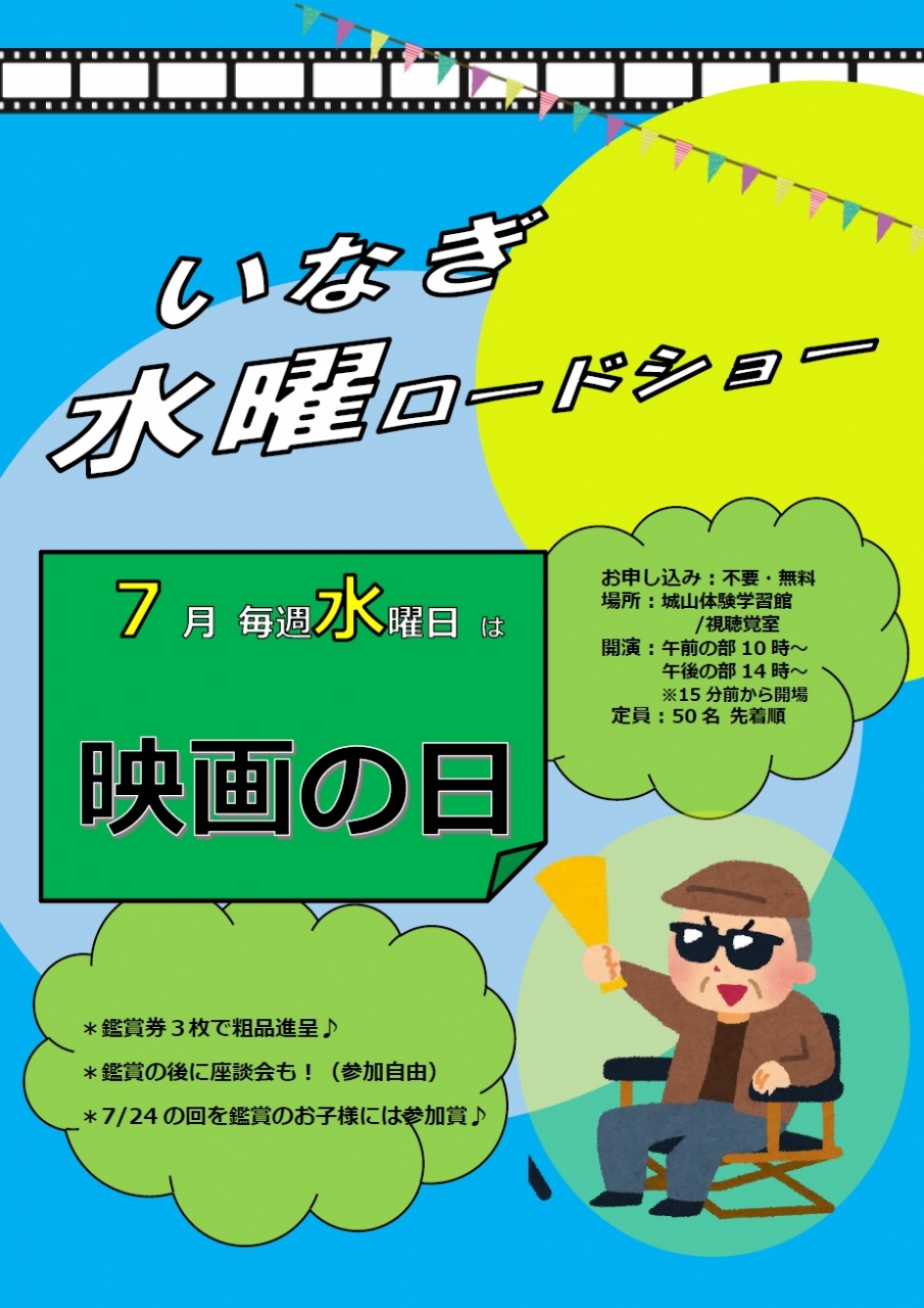 7月の毎週水曜の午前と午後に1本ずつ、合計10本の映画を上映。