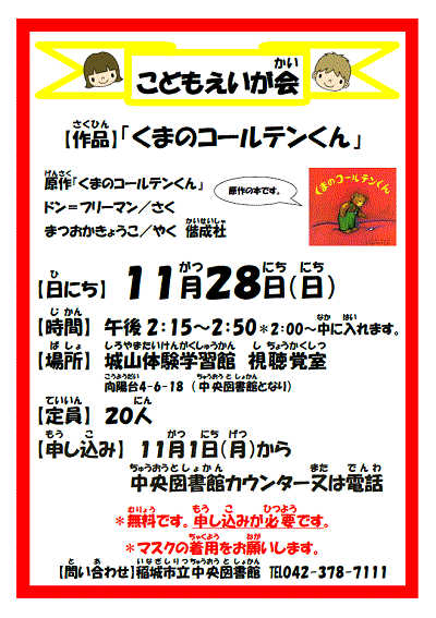 11月1日(月)から中央図書館カウンターまたは電話にて受付。