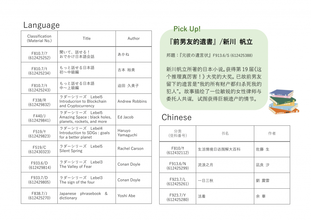 We are distributing a booklist of new foreign language
