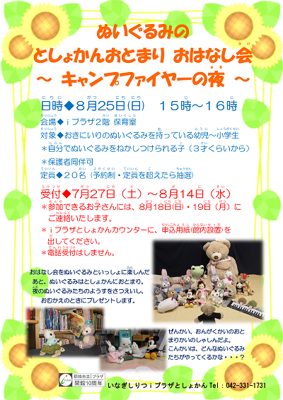 夏のおはなしをお気に入りのぬいぐるみと一緒に楽しんだあとで、ぬいぐるみはiプラザにお泊りです。